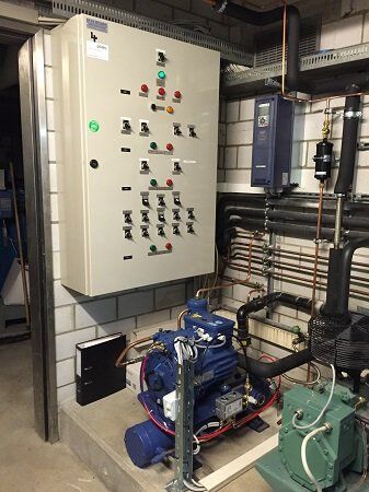 Anbindung einer stufenlosen Leistungsregulierung der neuen Minuskühlanlage mittels Integration eines Frequenzumrichters (Regulierung von 30 bis 63Hz).